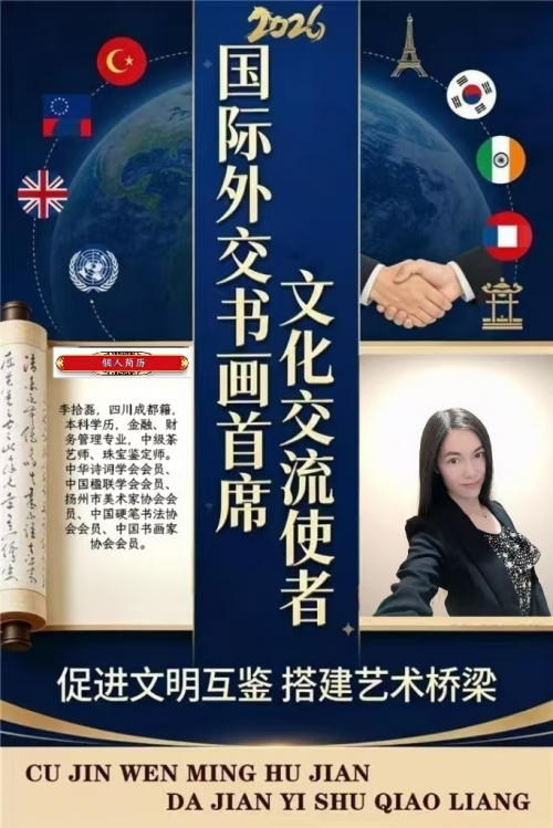 值得一提的是,李拾磊拥有金融、财务管理专业学习背景,还是利用业余时间参加考评中级茶艺师、珠宝鉴定师。她在本职工作之余,利用晚间能够全身心地投入到艺术创作中,实现了职业生涯与艺术创作的完美融合。这种跨领域的发展不仅丰富了她的人生阅历,也为她的艺术创作提供了更广阔的视野和更丰富的素材。李拾磊以其多元的艺术才华、众多的荣誉称号、广泛的媒体影响力和大量出版的著作,成为了艺术界一颗耀眼的明星。她的经历激励着更多人在追求自己热爱的事物时,不要被专业和领域所限制,只要有热情和坚持,就能够在多个领域取得成功,为社会创造更多的价值。相信在未来的日子里,她将继续在艺术的道路上探索前行,创造出更多优秀的作品,为祖国艺术事业的发展做出更多更大的贡献。