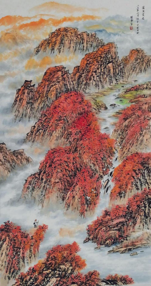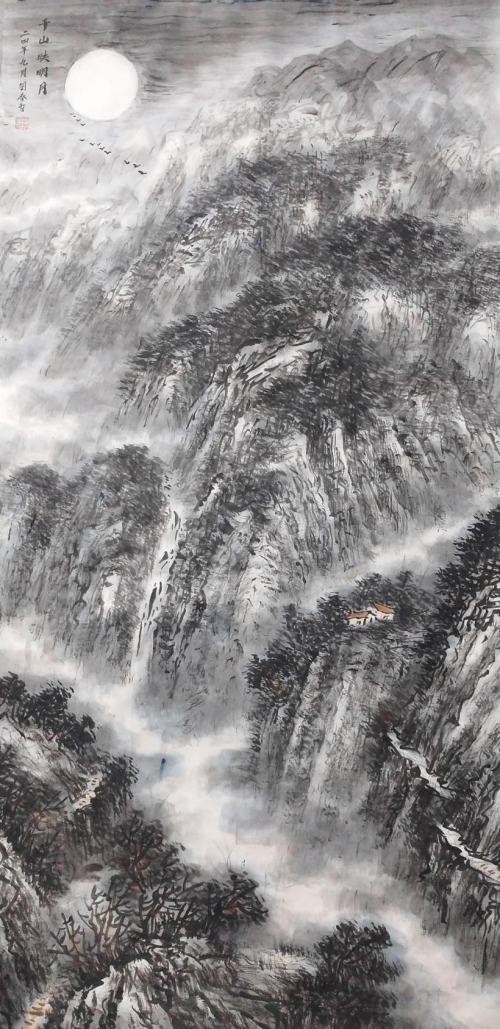 2023年9月,国画作品在“中澳一带一路”书画交流展中荣获一等奖,通过传统山水皴法与写意笔触展现丝路精神,强化了“和平合作、开放包容”的国际传播。2023年10月,他的多幅国画作品入选“艺术之巅看中国・大美中华”纽约时代广场海外展播工程,借助国际舞台向全球展示中国艺术的磅礴气势,增强了中华文化软实力。