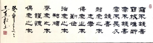 王连根先生自幼酷爱书画及收藏,痴迷于书法,擅长隶书,早年拜师于湖北省著名书法家、老河口市书法家协会主席郭夫之老师为徒,后受中国书法家协会副主席刘炳森老师教诲及影响,以金农体为根基兼学张迁碑、曹全碑、史晨碑、石门颂等汉唐隶碑及王羲之行楷,数年磨一剑,仍苦苦追求,对此,故宫博物院单国强、国家历史博物馆吕长生两位大师给予了高度评价:“在坚实的传统功力基础上,充分发挥了自己的创造性,用现代的审美意识,文学素养,形成了鲜明的个人风格,书风中和典雅,端庄俊逸、俊逸潇洒、古朴厚重、于邀劲挺拔之中见秀锐,朴茂凝重之间显生动。从而充分表现了书家本身的精神气度,也表现出其对艺术审美的造诣和追求”,透过王连根先生的作品,使人们感受到一种启迪、感受到一种力量、感受到一种震撼,深受社会各界的喜爱。