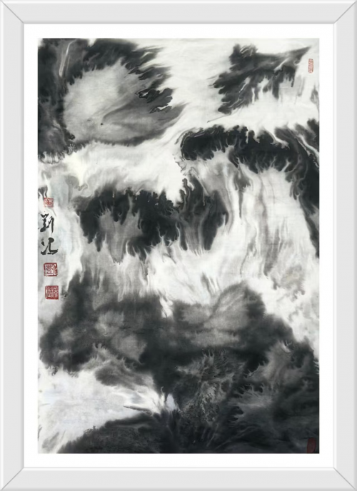 刘冯从小在大山里长大,对山水有深厚的感情,对山水云雾冰雪等变幻不定的自然现象有深刻的了解和切深体验。同时对山水的理解与创作有自己独特的见解,通过对水墨、技法、材料,风水的大胆探索,并广泛吸收各艺术名家的创新理念,锲而不舍,逐步形成自己的艺术特色。他的元宇宙意象山水画用笔独特,把山水的神秘与灵动体现的淋漓尽致。刘冯的现代水墨作品,大气磅礴,纵横万壑,妙趣天成。不论是丈二巨幅,还是尺余团扇,可见浓墨乍起,奇幻缥缈,宛如风云激荡,动感十足,又如广袤圣漠,幽邃禅境。