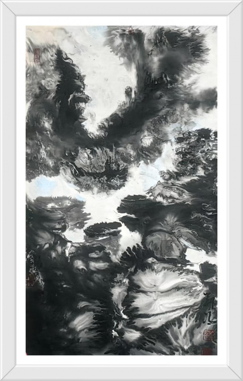 在当代水墨艺术探索的前沿阵地上,刘冯(实名刘泽旺)以其独树一帜的“元宇宙水墨山水画”开辟了一片崭新的艺术天地。作为资深金融人士与艺术品收藏家的双重身份,赋予了他超越一般画家的宏观视野与理性思维;而作为“元宇宙水墨山水画开创者”的艺术实践,则展现了他深厚的传统笔墨功底与大胆的创新精神。其作品不施粉彩,纯以水墨为载体,在黑白之间构建出一个既根植于传统文脉,又充满未来想象的宏大世界。这种独特的艺术语言与前瞻性的创作理念,使其作品在当代画坛中具备了极高的辨识度与收藏价值。