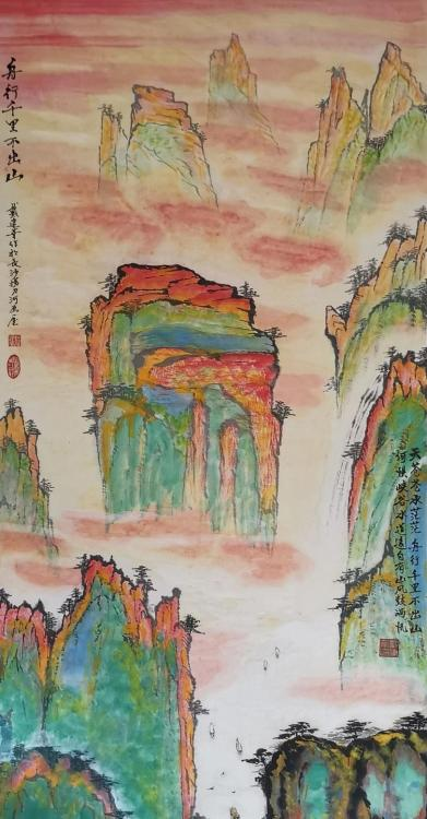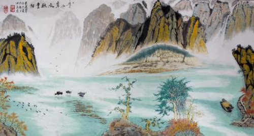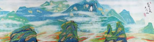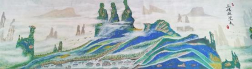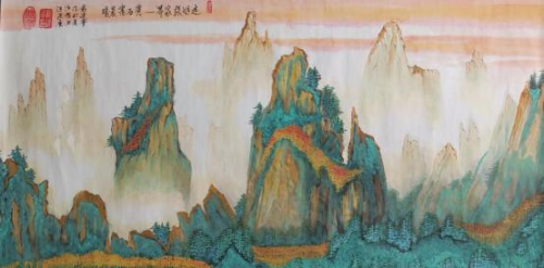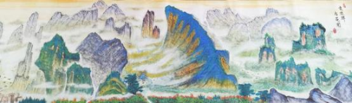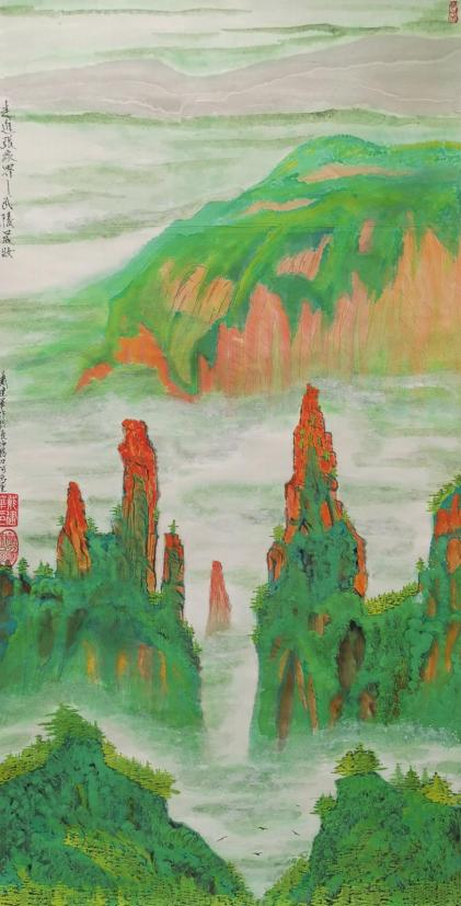 從他用時兩年創作的足以震撼中國畫壇,具有史詩級的百米山水畫長卷《壯美山 河一一走進張家界》中可以看出, 其中既有中國畫講究的意境和神韻,又有西畫