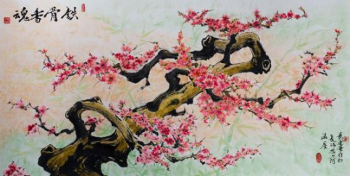 《 铁 骨 香 魂 》 一 红 梅 赞 伟 大 的 中 国 共 产 党 1 4 0 X 7 0 ㎝ 風 寒 铸 铁 骨 , 凌 霜 花 更 红 。 奋 斗 百 年 路 , 啟 航 新 征 程 。( 此 作 被 中 国 邮 政 印 制 成 邮 品 纪 念 封 发 行 )
